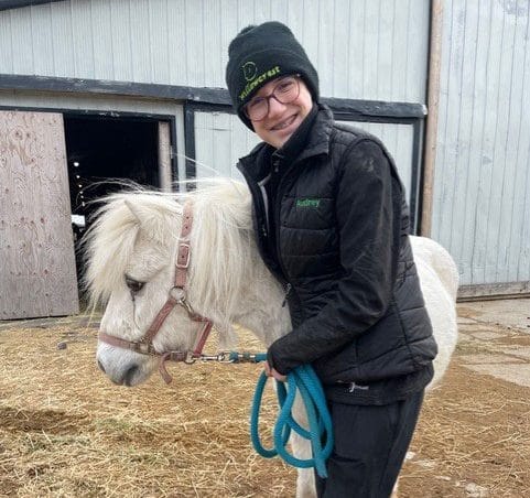 Audrey has been visiting the barn since she was three years old, and started volunteering at 12.