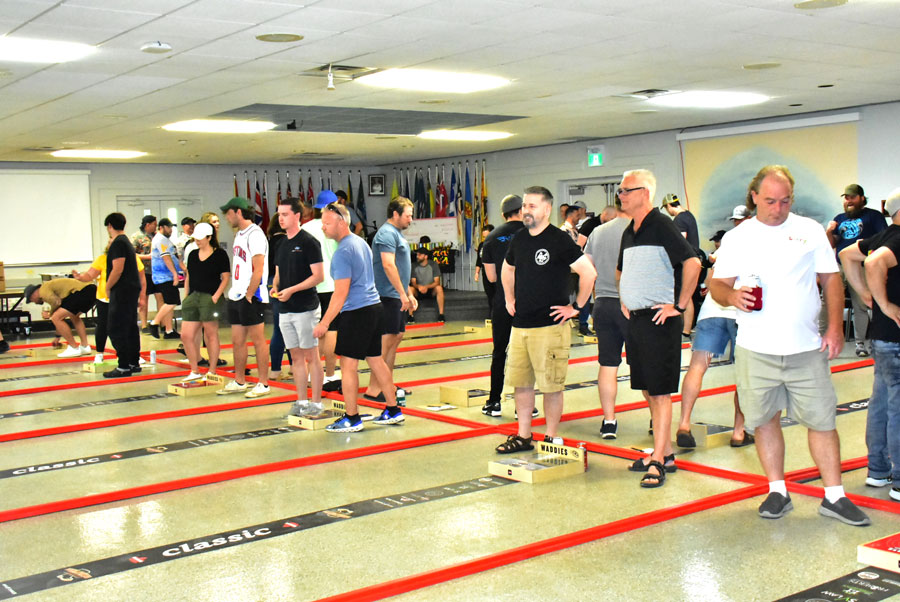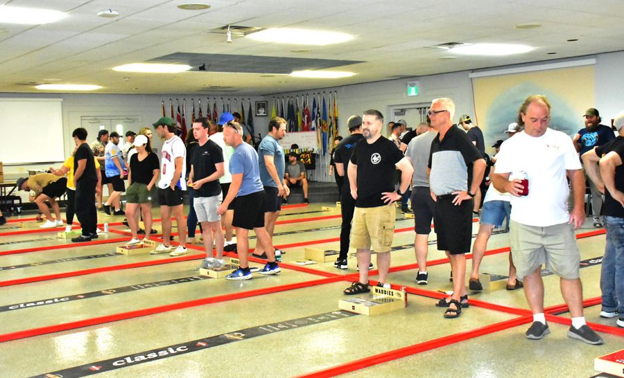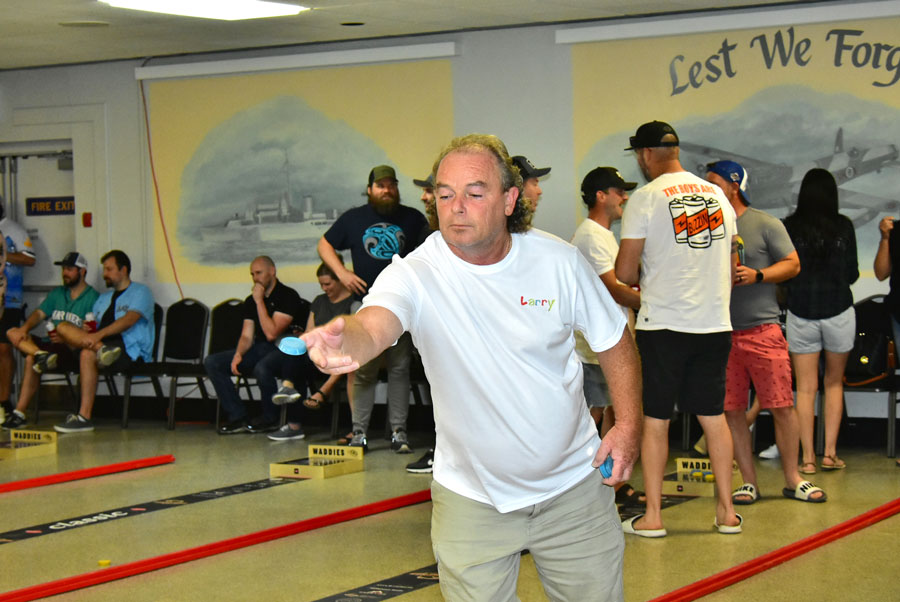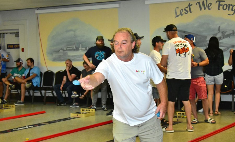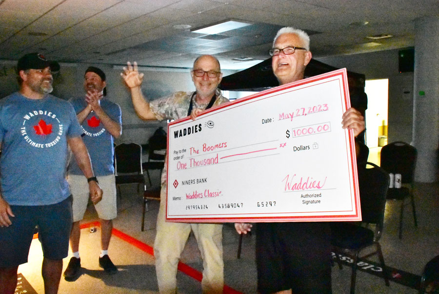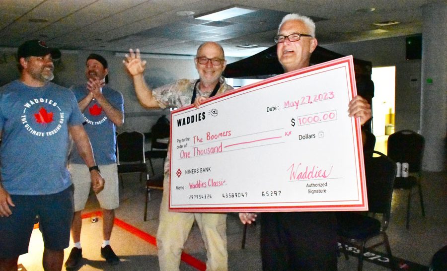The second annual Waddies Classic was held at the Fergus Legion on May 27 and on the line were bragging rights and $1,000 to the winning team. Two-person teams came from as far away as New York, Kincardine, Simcoe as well a good number of local entries. The game was invented during the Second World War but a group headed by Andy Speers has brought it back to life, both selling and promoting the game. The object of the game is to throw a rubber “puck” through a hole in a wooden box from 12 feet away. This year “The Boomers” won the $1,000 prize.