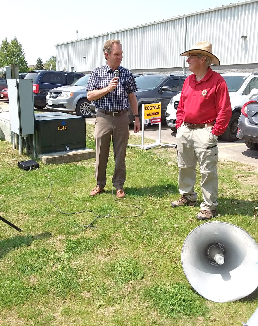 Walk for Guide Dogs – The Lions Clubs of Fergus and Marsville Pet Valu Walk for Dog Guides was held on May 28. “We want to thank Centre Wellington and area for supporting our annual walk,” club officials stated, adding the event provides funds to raise and train service dogs that are “given to Canadians at no cost.” Organizers say the walk was a “very successful” event, raising over $8,700. “That combined with $2,600 donated on-line will put us close to our goal of about $13,000,” club officials noted. The fundraising continues with a “Pints for Puppies” event at the Brew House in Fergus on June 4 at 1pm, with the business donating $1 for every pint sold before 4pm. The Lions also thanked area residents for supporting and attending the club’s annual Fergus Lions Home and Leisure Show recently. Wellington-Halton Hills MPP Ted Arnott addresses the crowd.Submitted photos