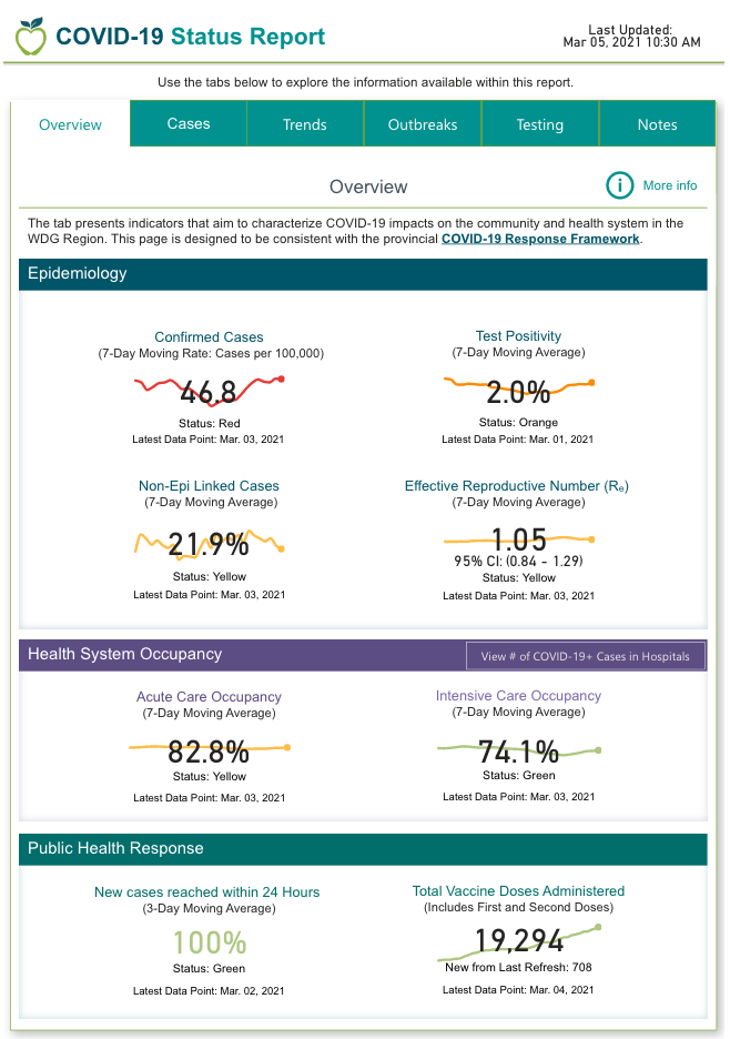 Local Medical Officer of Health Dr. Nicola Mercer told the WDGPH board on March 3 the data with the most significant impact on provincial COVID-19 alert levels are: