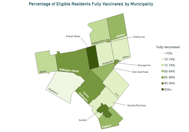 According to WDGPH data tracking vaccination uptake across county municipalities, at least 7,418 or 70% of Erin's 10,598 residents are fully vaccinated. In previous weeks, less than 70% of Erin residents had two doses.