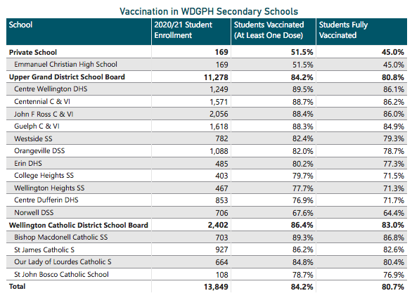 Across the region, there are an estimated 11,176 high school students who are vaccinated with two doses; 484 with only a single dose; and 2,189 students who have not yet received a single dose.