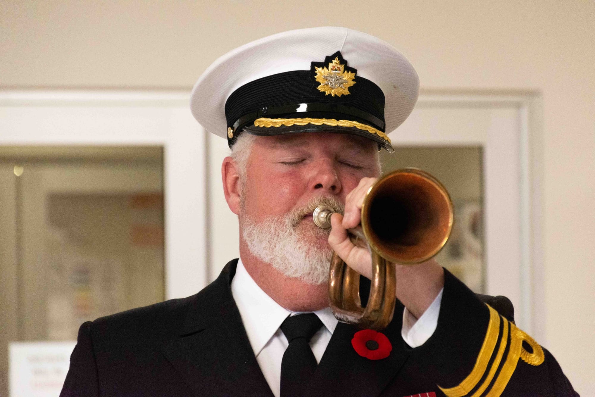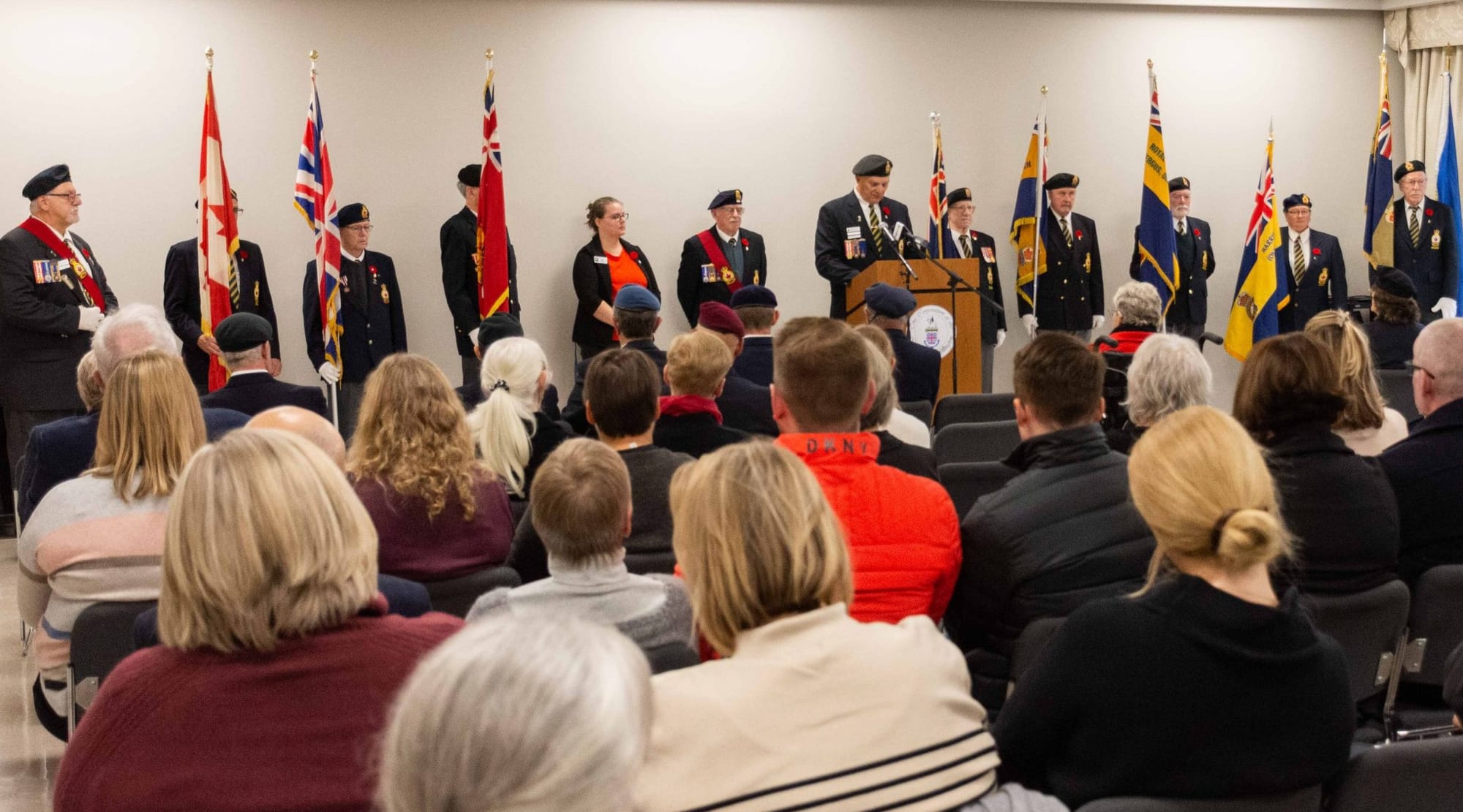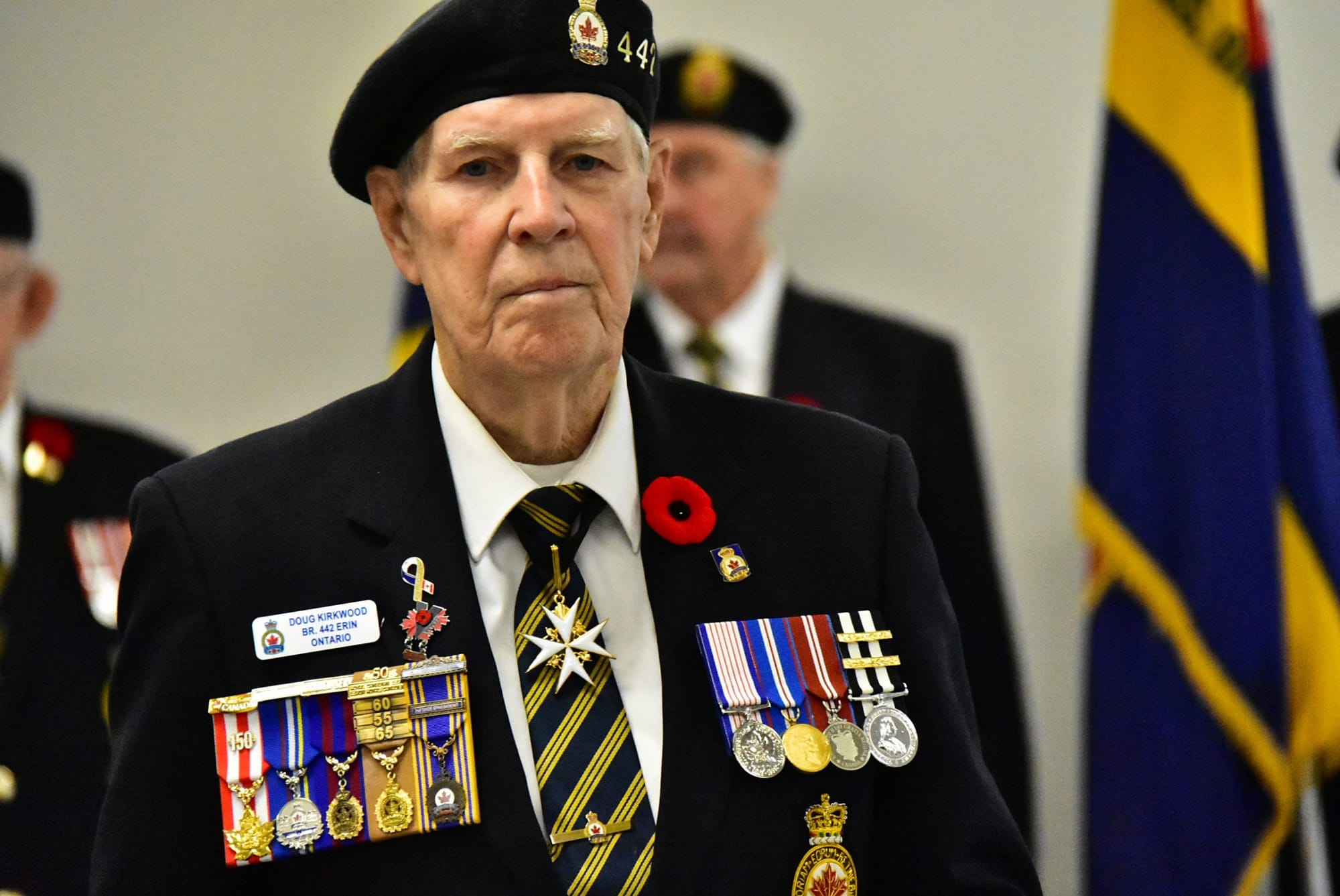 Inside the Aboyne Hall on Nov. 6, Legion men and women stood lined behind a podium wearing blue legion blazers, some weighed down with medals, atop crisp white collared shirts and blue-gold striped neckties.