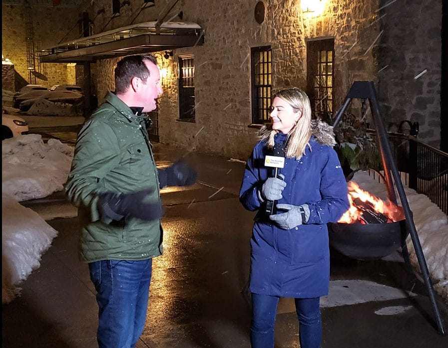 Hosts Jordyn Read of the Weather Network and Kevin Forget of Destination Ontario came to Elora on Feb. 9 and 10 to see what the village has to offer in winter.