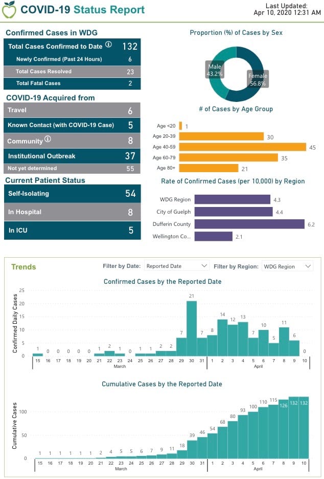 As of April 10, the WDGPH website states there are 132 confirmed cases in the region, including six within the last 24 hours.