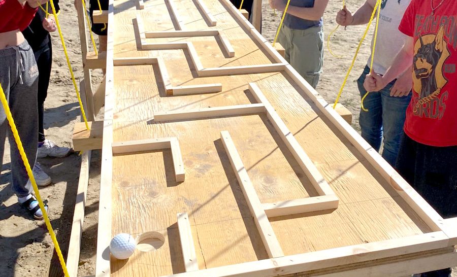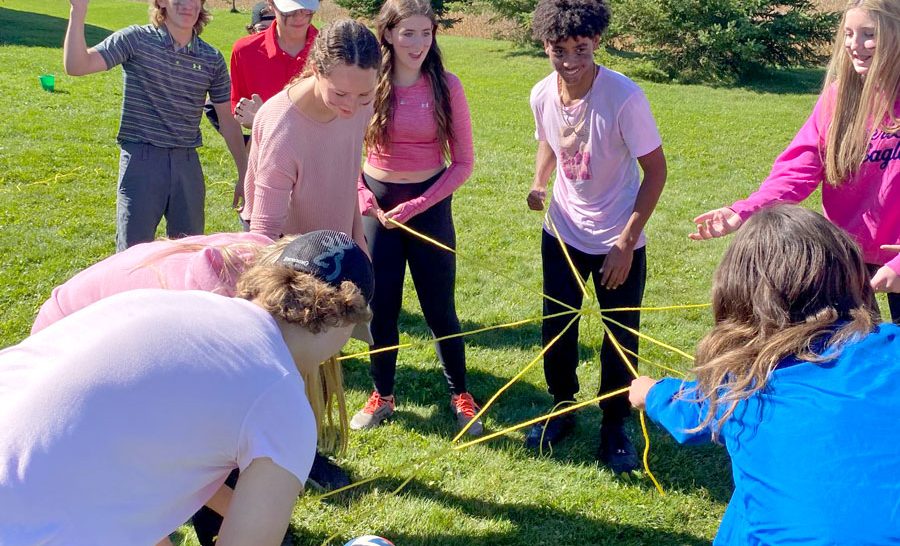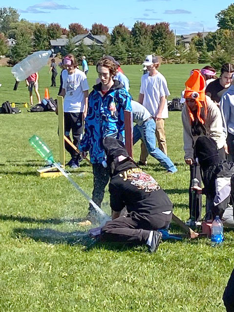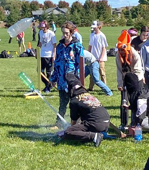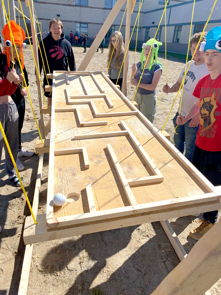 In teams, students participated in a variety of activities, including yoga ball volleyball, spikeball, road hockey, water rockets, golf ball maze, rubber chicken football.