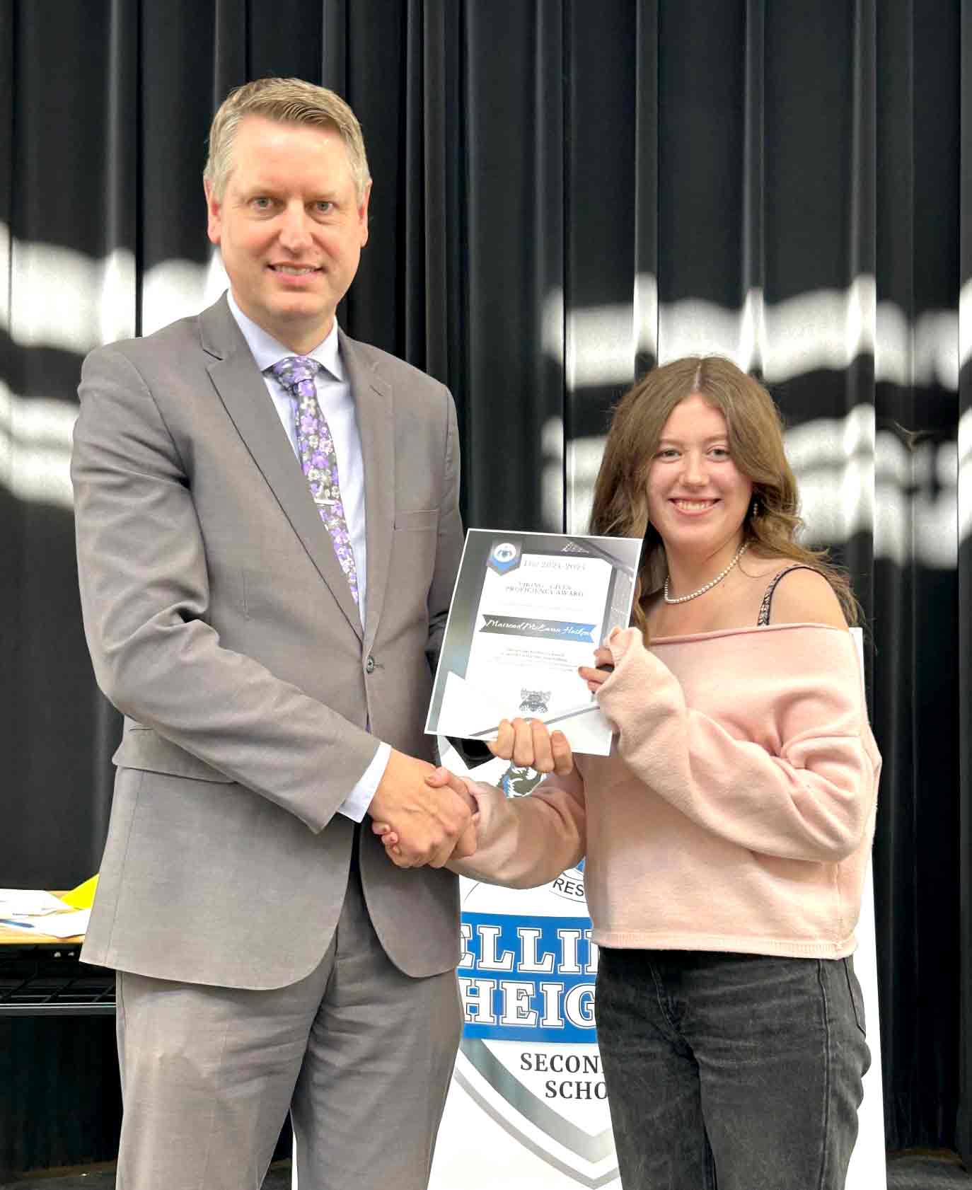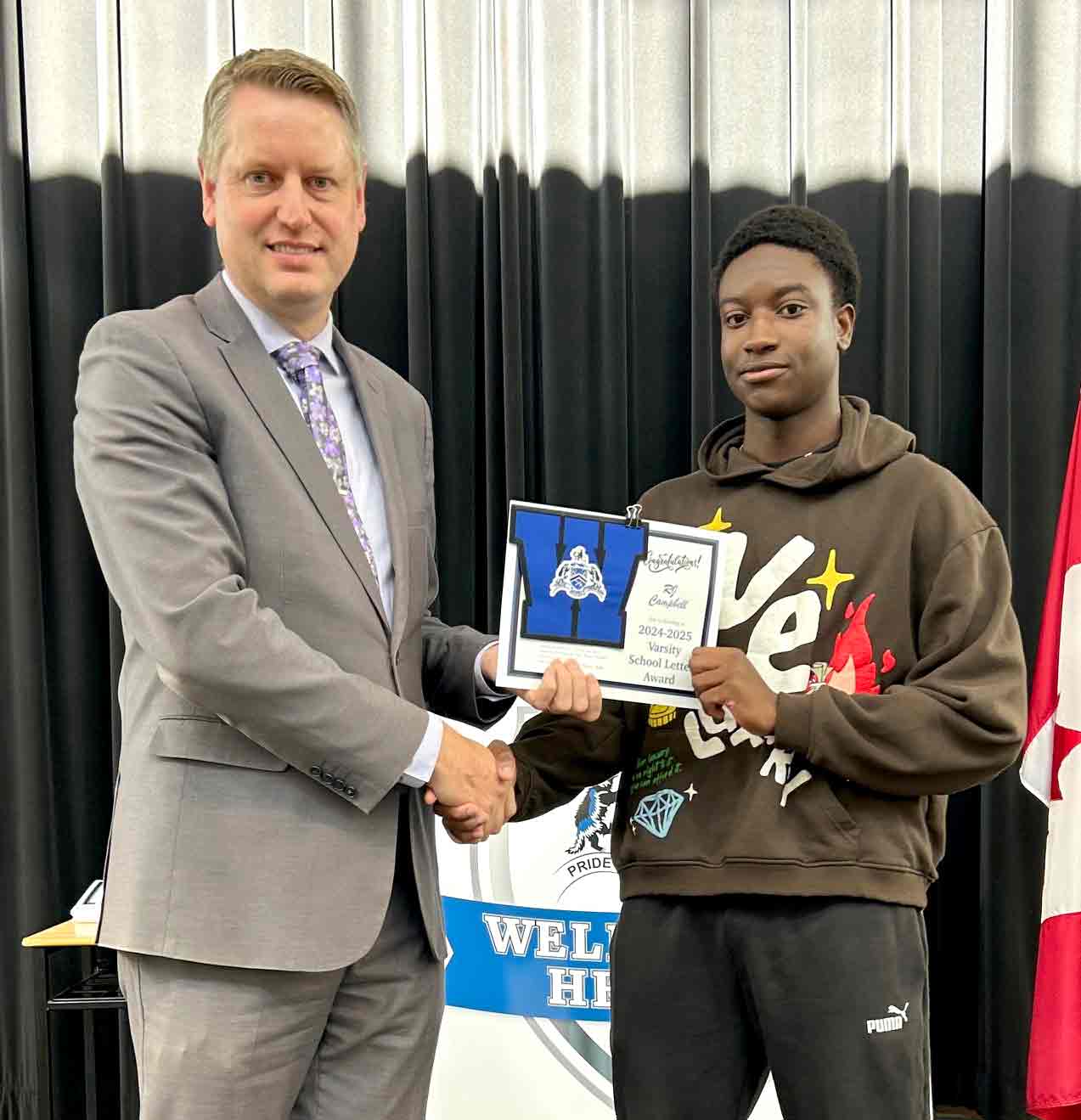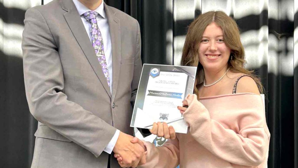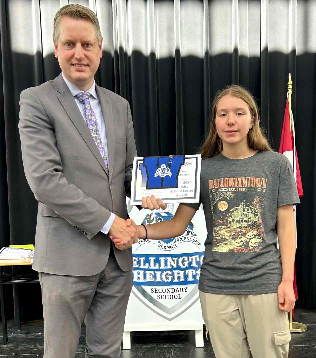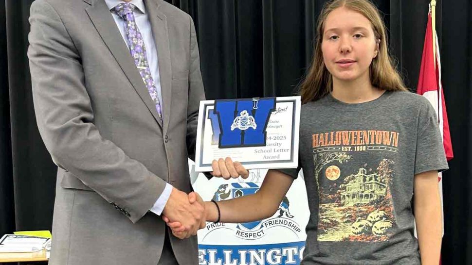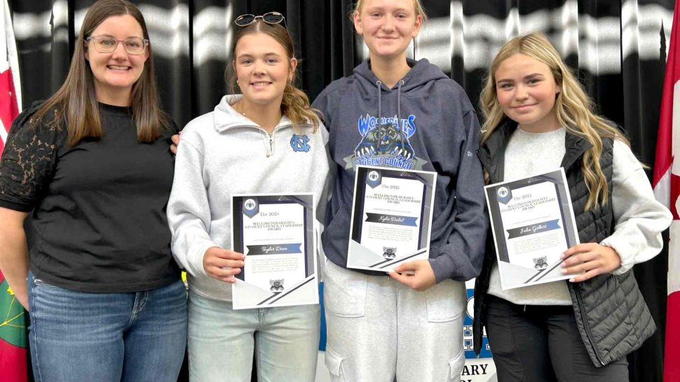 MOUNT FOREST – On Oct. 16 students in Grades 10, 11, and 12 at Wellington Heights Secondary School in Mount Forest were recognized for their academic, extracurricular and leadership successes this past school year. Students on the honour roll, those who scored the highest marks in their courses, and those who earned the highest academic average for their grade level were all honoured in a school assembly. This year, School Letter Awards were also presented to approximately 10 students in each grade – as voted on by the staff – for demonstrating the following criteria:  significant academic success or improvement, positive representative of the school and actively involved in school life. Additionally, Student Council Leadership Awards and some special awards were presented to deserving students. In addition to receiving certificates, award recipients also received some home-baked treats courtesy of the school’s Foodies Club.