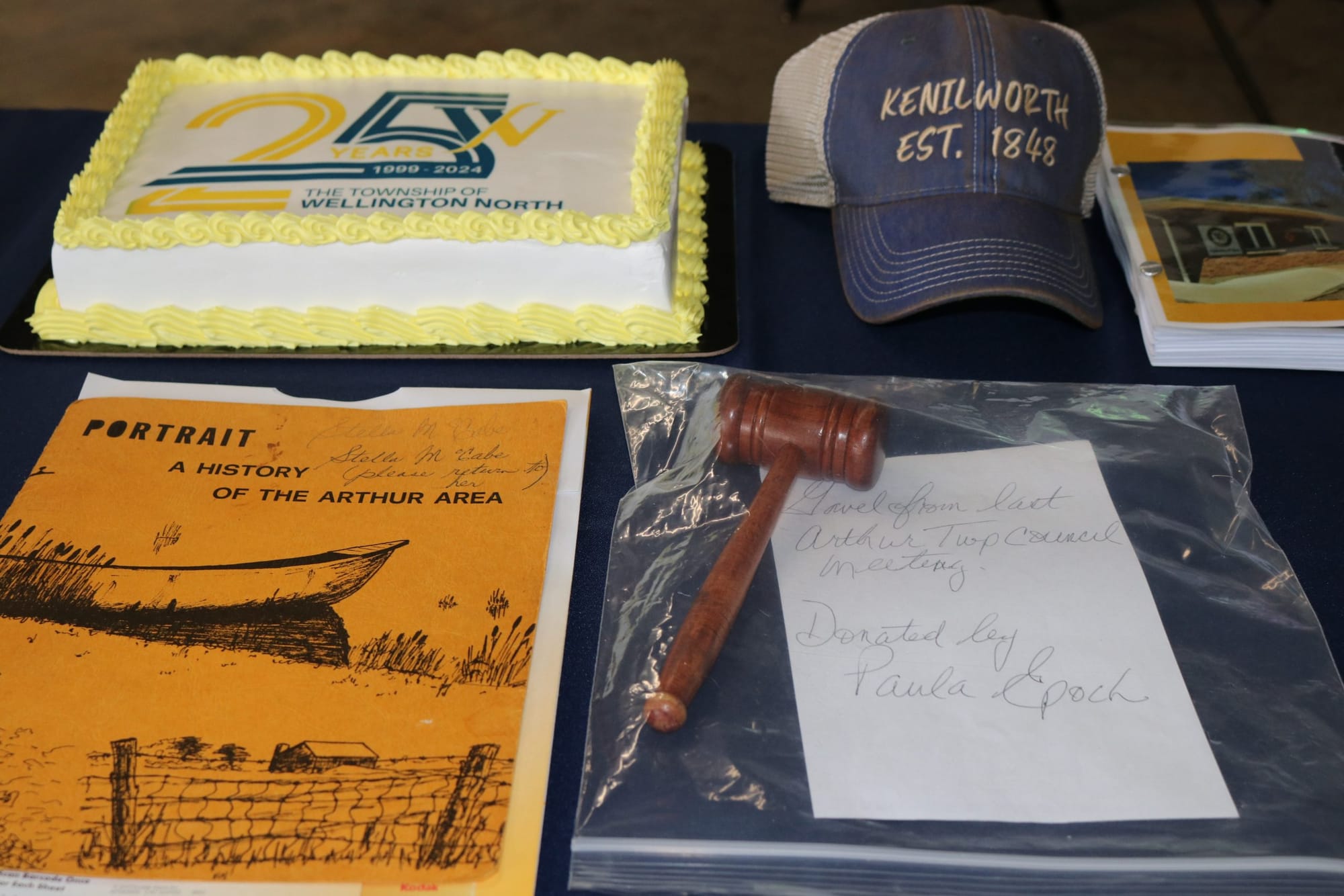 Other items were a Kenilworth cap, Arthur township plate, documents outlining the history of Arthur and a Mount Forest pin, to list a few.