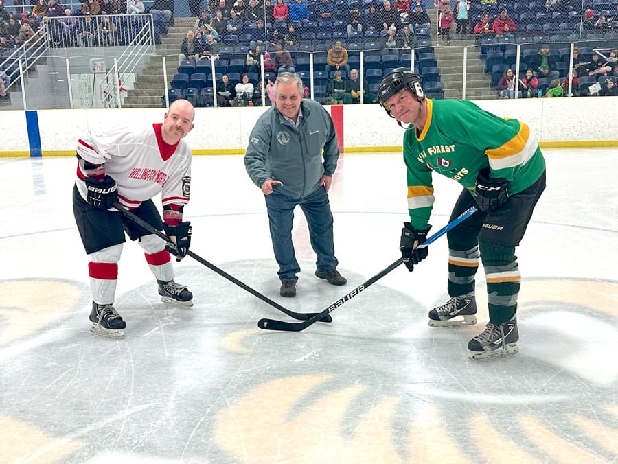 WELLINGTON NORTH - Members of the Wellington North Fire Service took on a team of Mount Forest Patriots Alumni in a charity hockey game at the Mount Forest and District Sports Complex on Feb. 24. The game raised over $2,000 in cash donations, plus a pickup truck full of non-perishable food donations for local food banks.