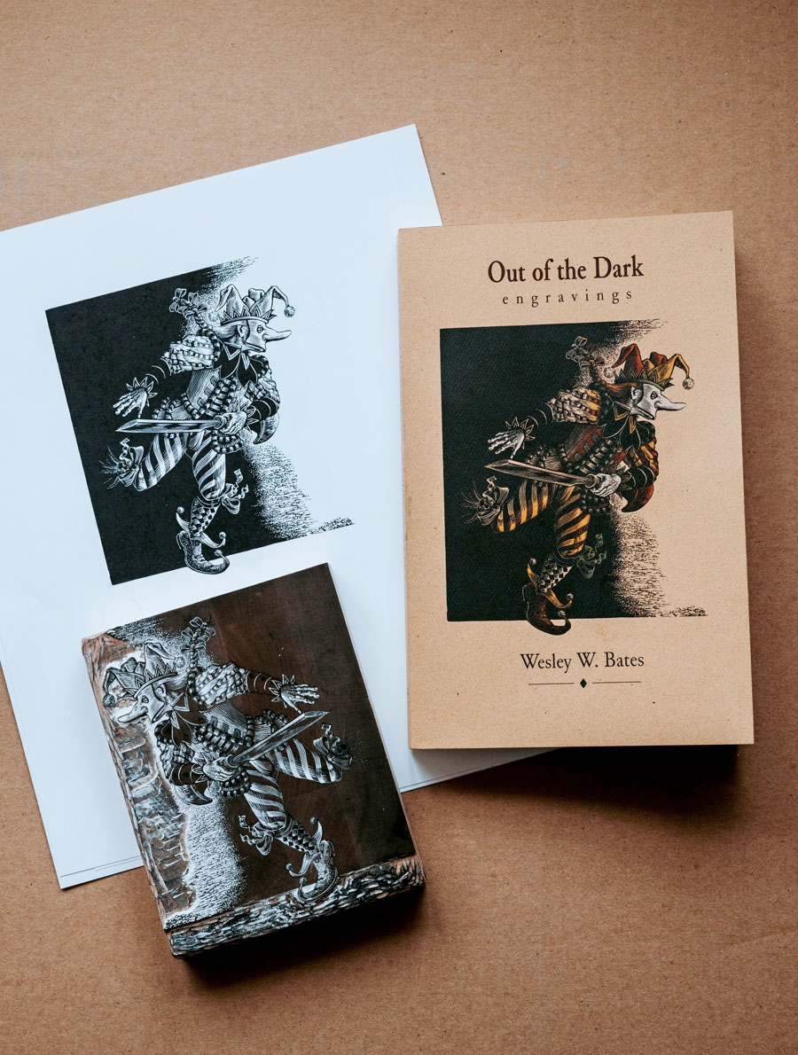 The engravings in Out of the Dark were created by Bates for various projects, some from his own West Meadow Press and others for clients such as Canadian publishing house Harper-Collins, the Carnegie Gallery in Dundas and Parry Sound’s Festival of the Sound.