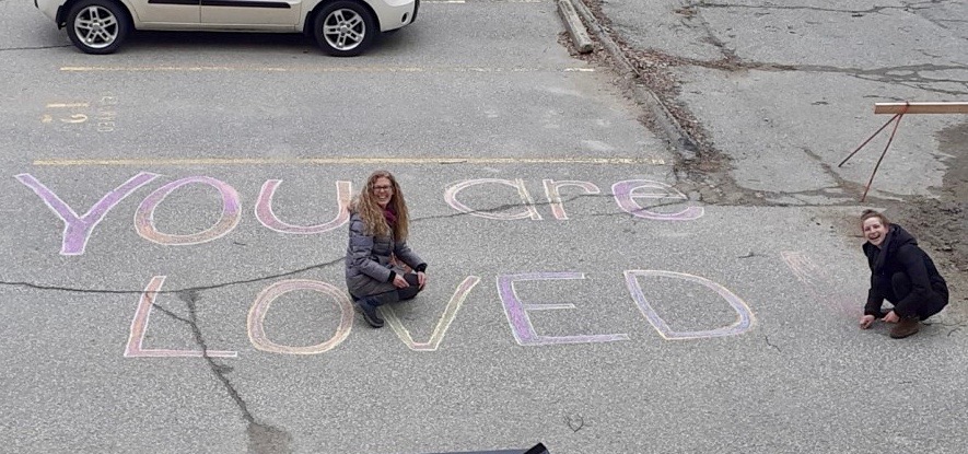 ELORA – Small gestures make big impacts, like the words “You are loved” written in large letters with brightly coloured sidewalk chalk on the pavement outside Heritage River Retirement Residence on March 27.