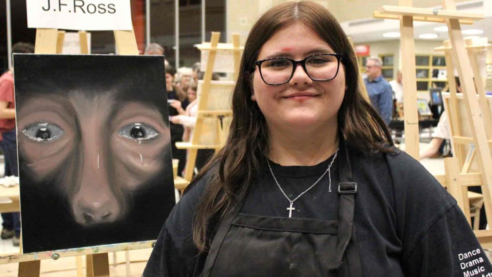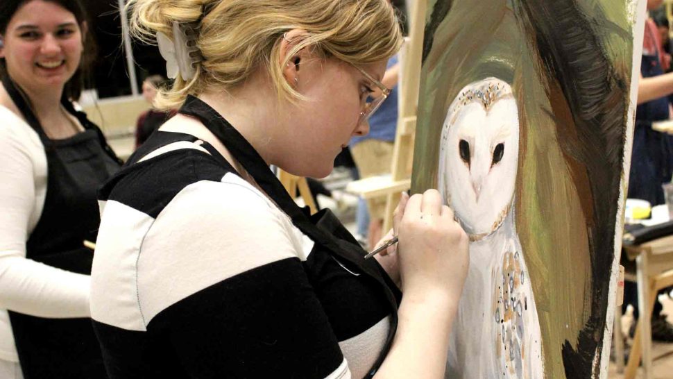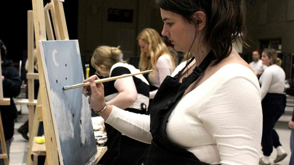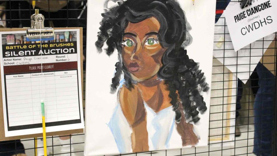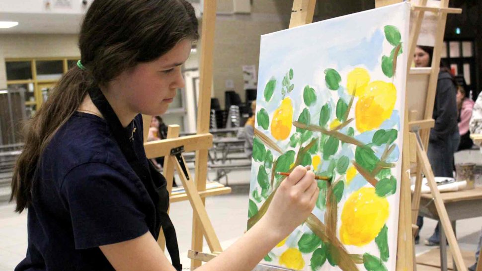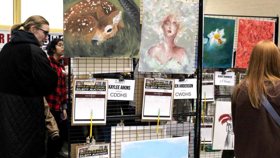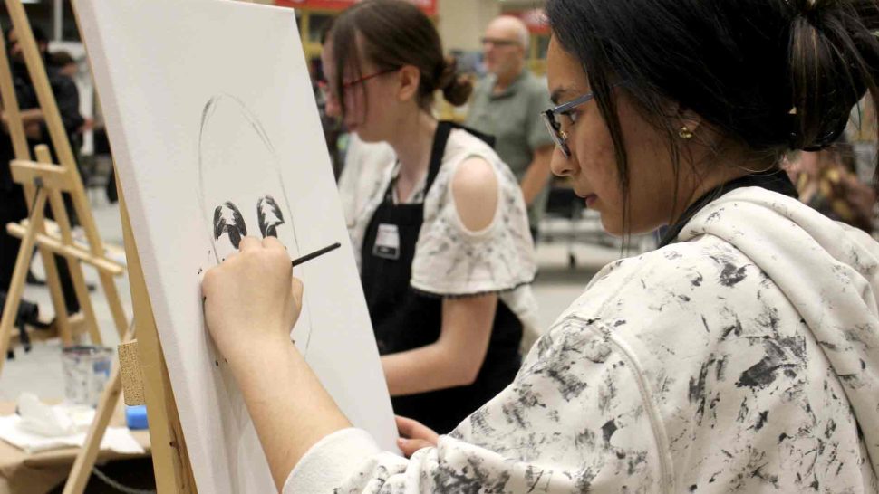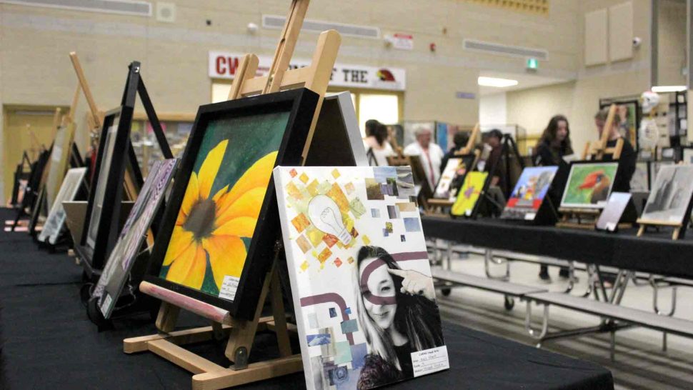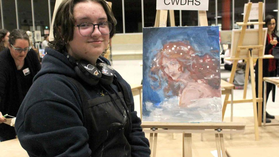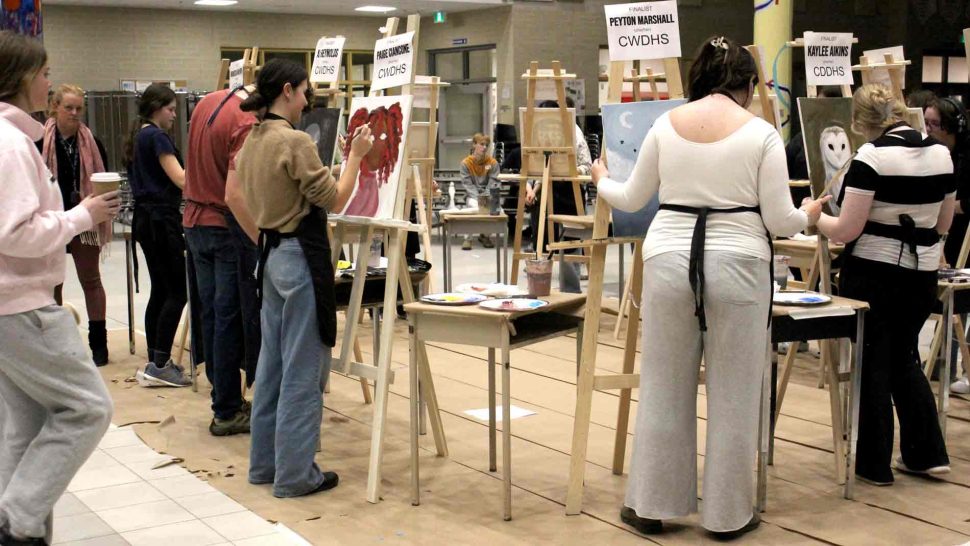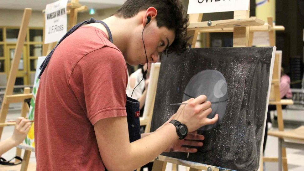 FERGUS – The Upper Grand District School Board held its second annual board-wide Battle of the Brushes event on April 3 at Centre Wellington District High School (CWDHS), during which students had 20 minutes to paint something of their choosing without using anything as a reference. Attendees voted for their favourite paintings to select the winner, and John F. Ross student Vanessa Van Wyk won the competition.