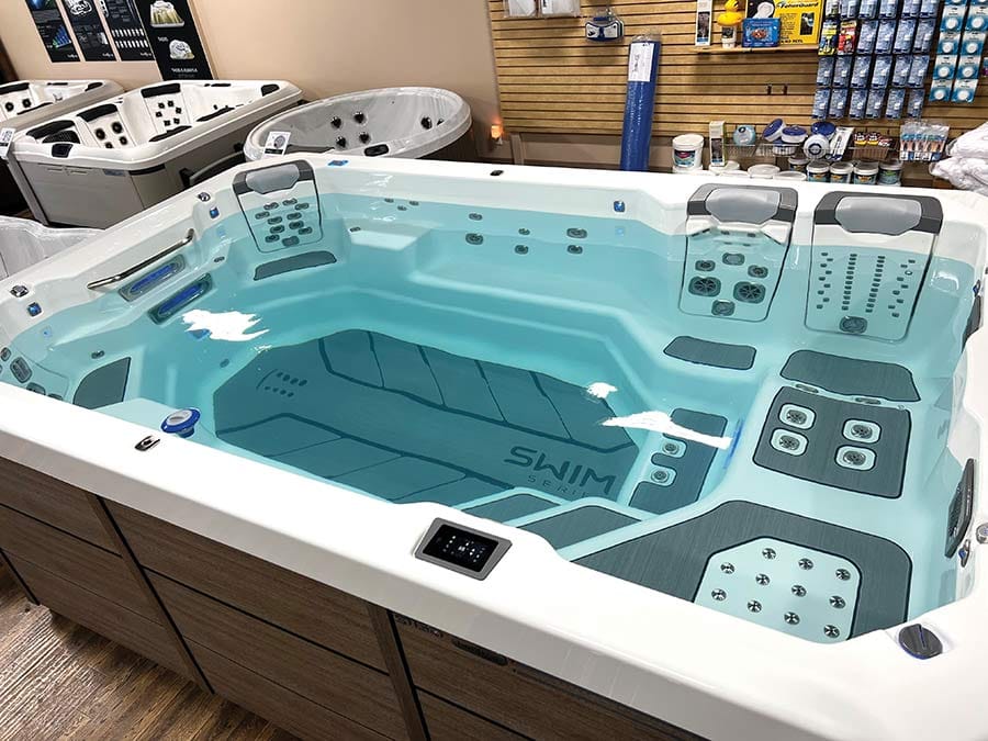 The 8,000 sq foot showroom features about 25 spas on the floor, offering you an opportunity to see, touch and experience the hot tubs, because as Krista says, “you wouldn’t buy a car without a test drive, so why would you buy a hot tub you never sat in?” Good point. So, climb in. Stretch out. Get a feel for the comfort you want. Imagine that spa with hot water swirling and pulsating water around your tired muscles. Relax. Take your time. They want you to feel comfortable, because Krista also says, “if you’re not comfortable in the tub when it’s dry, you’re not going to be comfortable in it wet.”